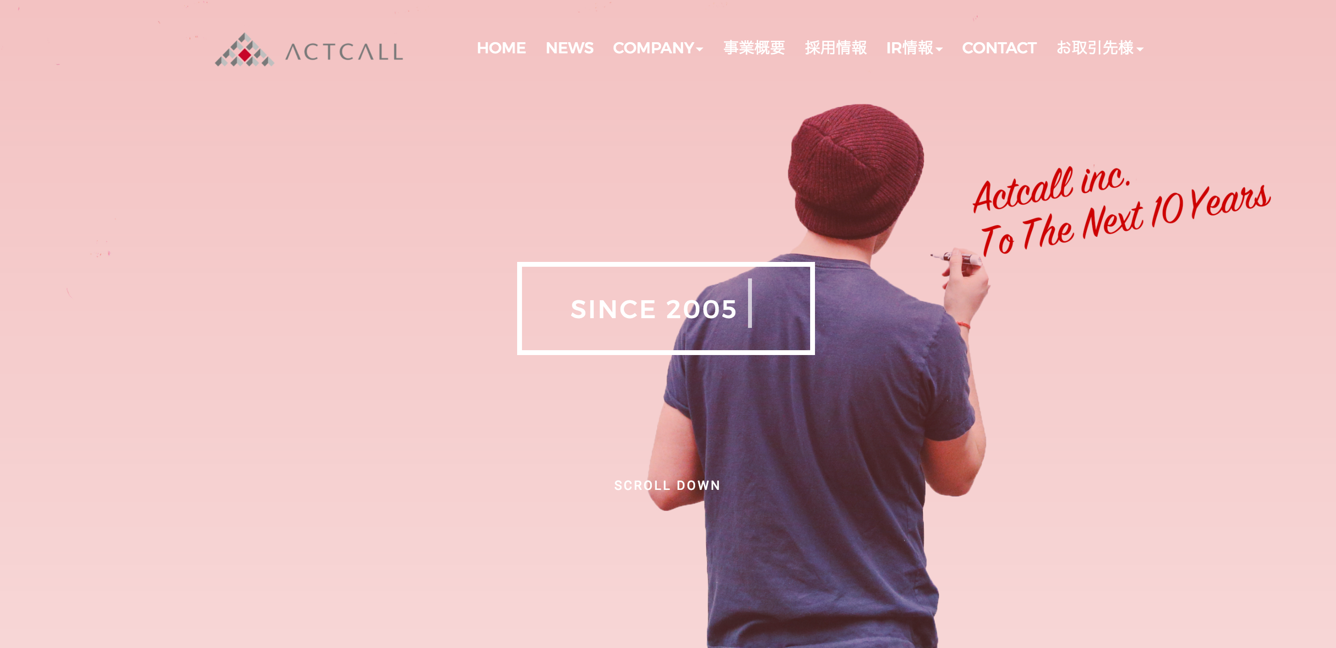 1. イメージ刷新。ファーストビューにてグローバル感を演出(https://www.actcall.jp/)