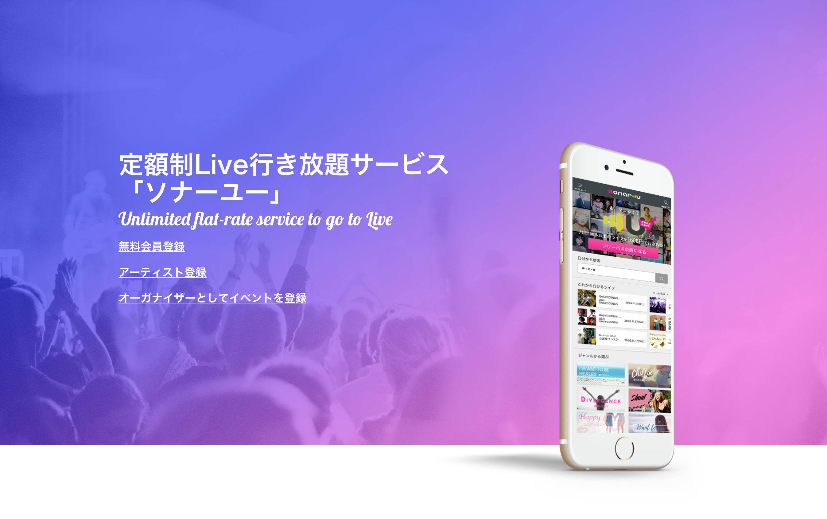 日本初定額制ライブ行き放題サービス「sonar-u」、